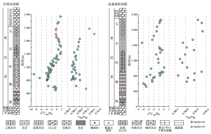表 1 塔里木盆地柯坪地区肖西沟剖面玉尔吐斯组碳酸盐岩同位素和元素含量