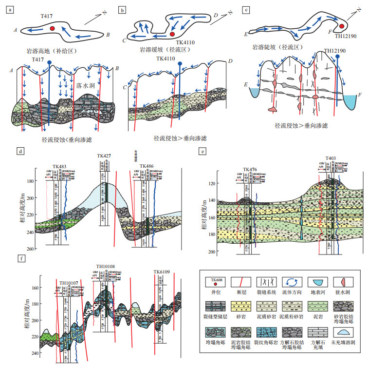 Figure 14. Reservoir development models of sinkholes under different geomorphic settings in Tahe area